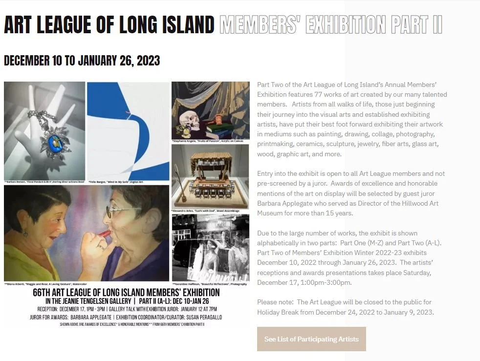 My work will be on display at the art league of long island through January. Should you have the time please stop by and see all of the amazing submissions!